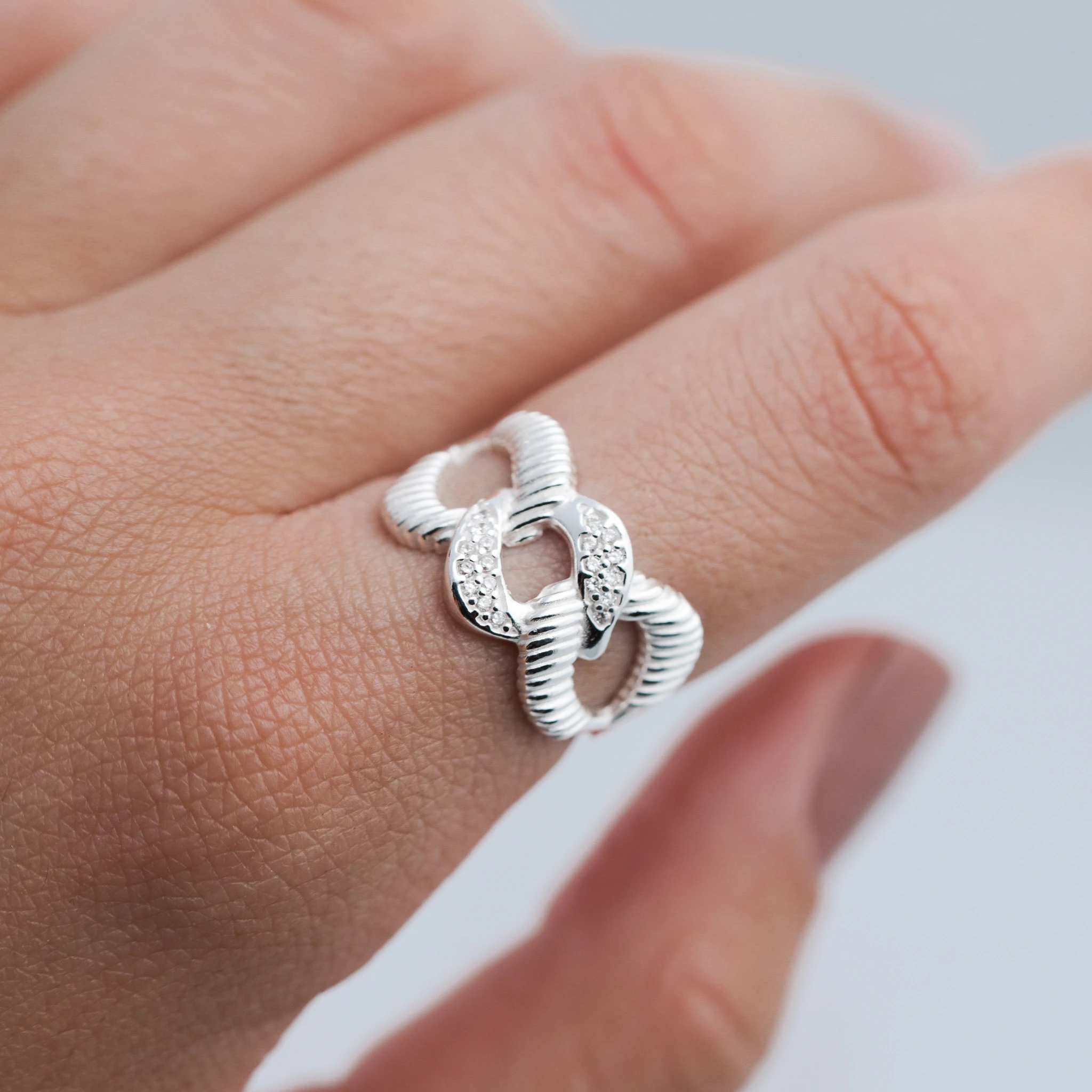 Un anillo de plata deslumbrante que irradia elegancia y simplicidad. Hecho con plata de alta calidad, este anillo destaca por su brillo sutil y su diseño minimalista. Su forma suave y líneas limpias capturan la esencia de la sofisticación moderna. Es el accesorio perfecto para agregar un toque de estilo refinado a tu atuendo diario, sin esfuerzo y con distinción.